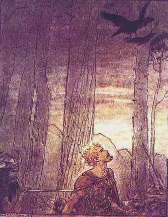 Rackham, "Hagen spears Siegfried", 1910/11