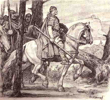 Der Fluß färbt sich rot, es schwankt des Kriegs Glück.
