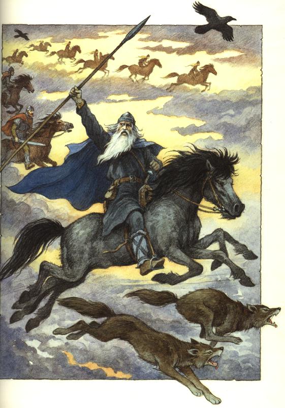 den Eschenspeer schwingt er mit Macht.